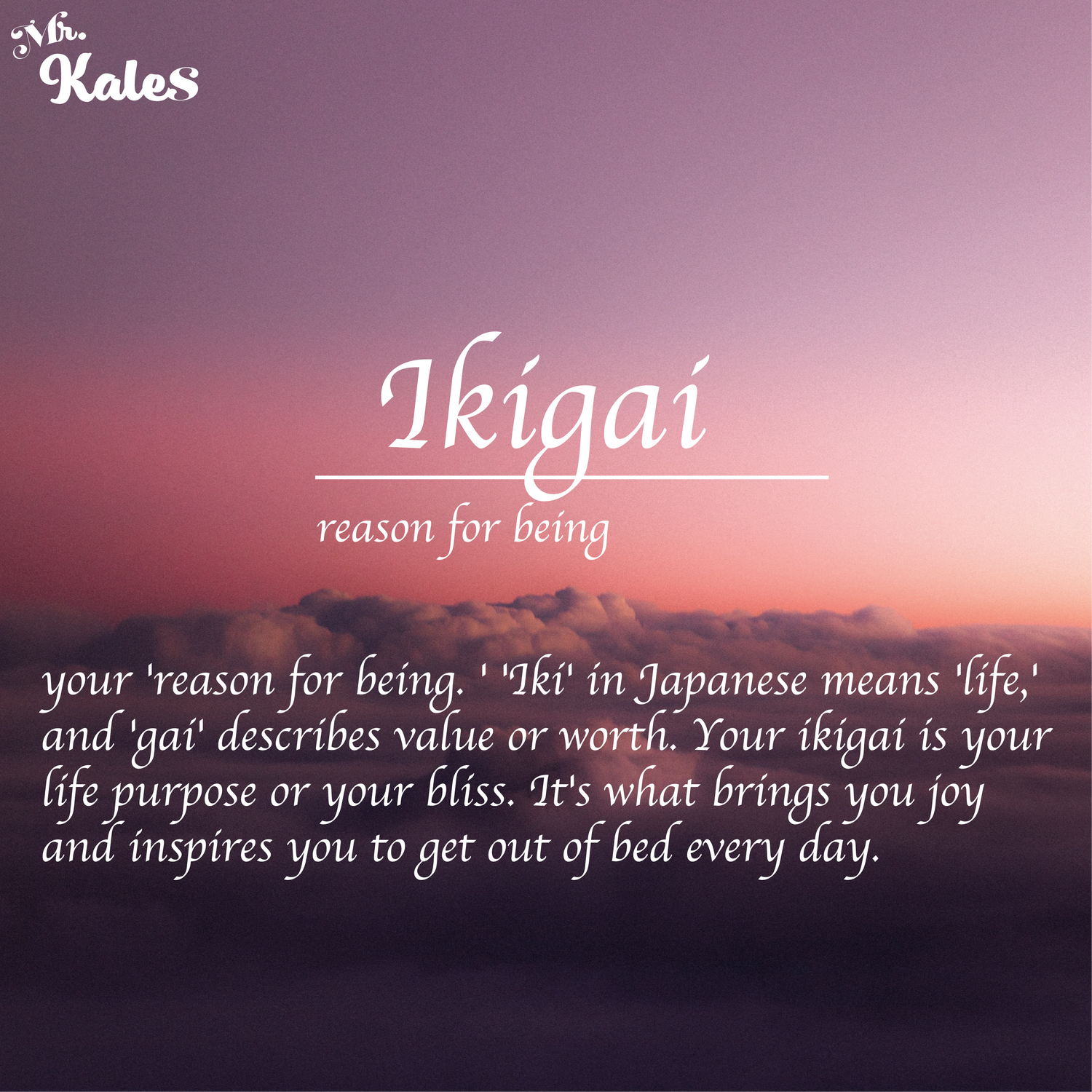 'Ikigai' is een Japans woord dat de reden voor bestaan betekent, hetgeen wat het leven de moeite waard maakt. Het vertegenwoordigt de perfecte balans tussen wat je liefhebt, waar je goed in bent en wat de wereld nodig heeft .